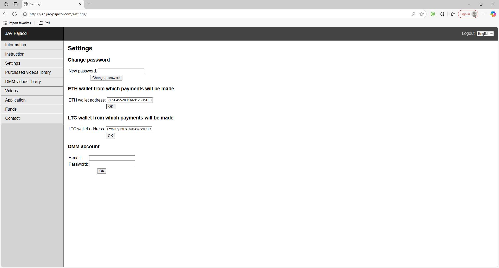 In settings provide Ethereum and/or Litecoin wallet address from which you will make payments. You can change both of these as many times as you want but at any time you can provide one value for each of these. REMEMBER TO SET ADDRESS(ES) CORRECTLY! IF BY MISTAKE YOU MAKE PAYMENT FROM ANOTHER ADDRESS, FUNDS WILL NOT BE CHARGED AUTOMATICALLY AND YOU WILL NEED TO CONTACT STAFF!