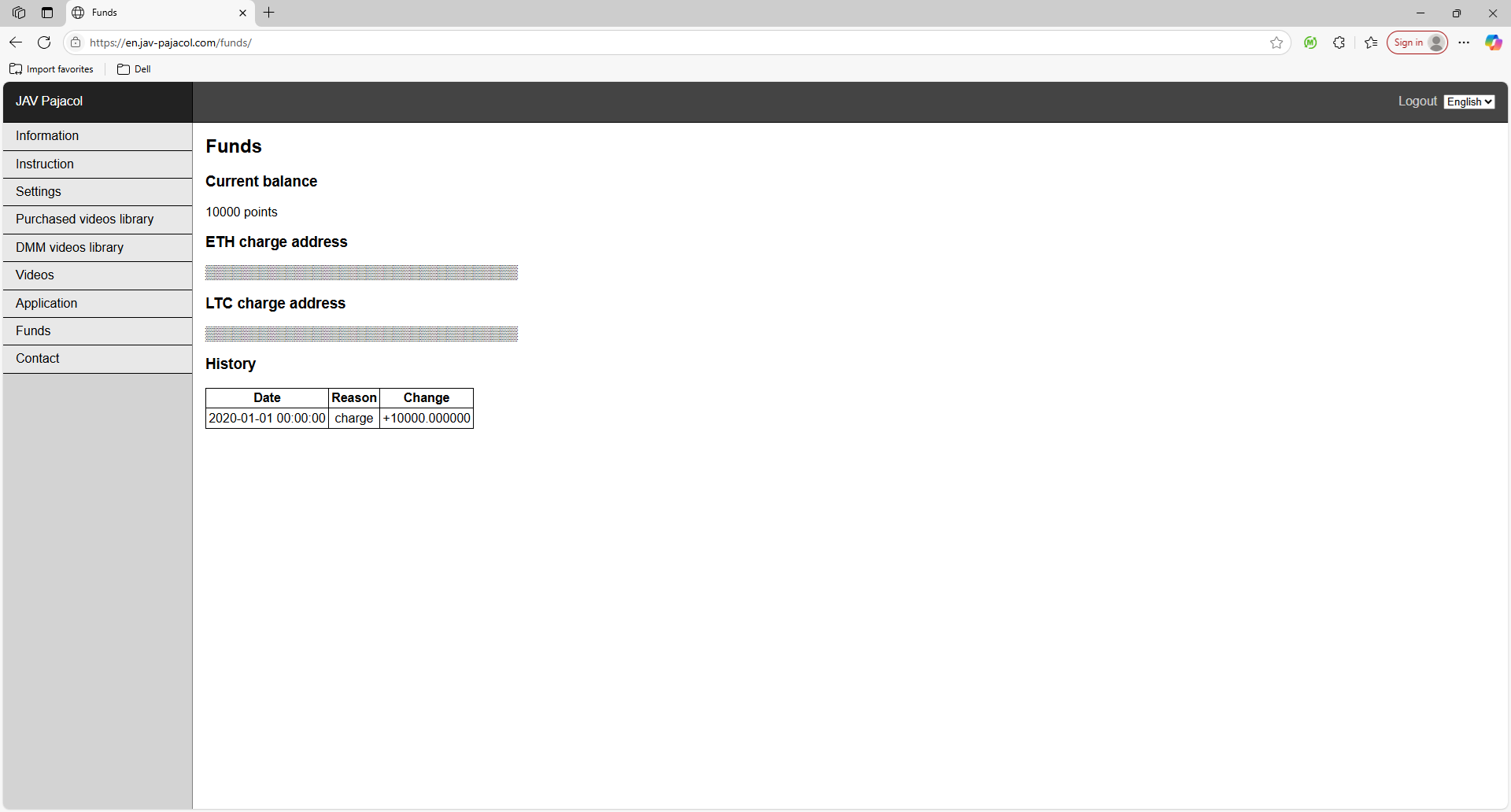 On funds page you will find address to which you should pay to charge your account. Amount that you charge is converted to japanese yen with current exchange rate.
