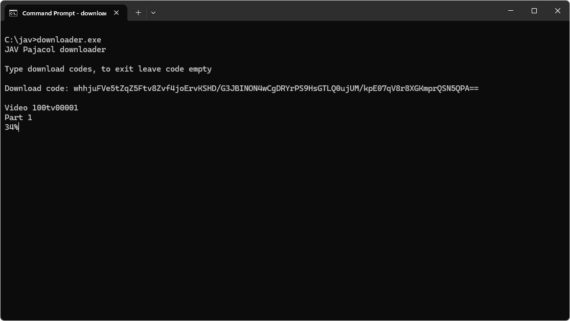Please provide download code in downloader program. Video will be created in the same directory as downloader program.
